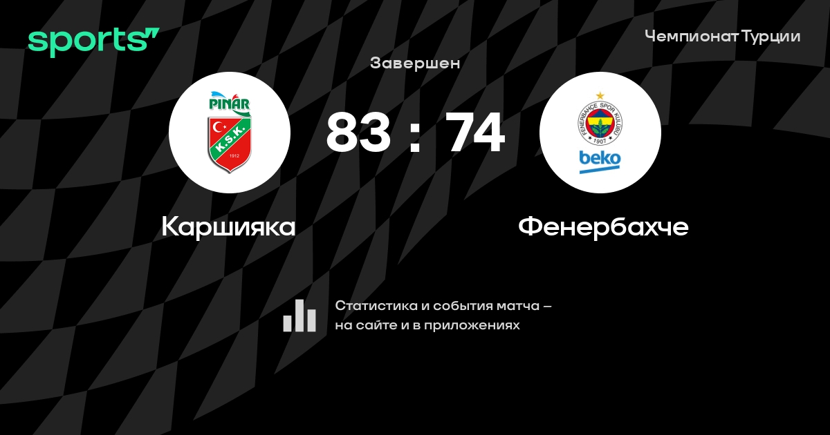 В прошедшем матче в рамках турнира Чемпионат Турции состоялась встреча команд Каршияка - Фенербахче в городе Измир (Турция) на стадионе Каршияка Арена (вместимость - 6500)
