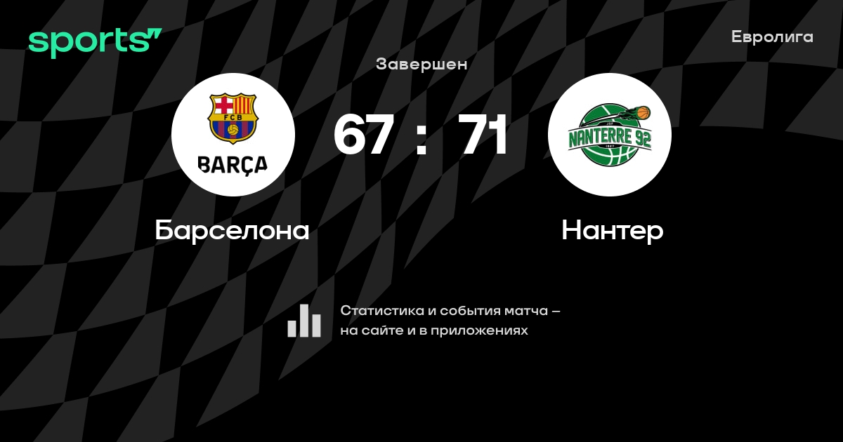 В прошедшем матче в рамках турнира Евролига (Группа A) состоялась встреча команд Барселона - Нантер в городе Барселона (Испания) на стадионе Палау Блауграна (вместимость - 7585)