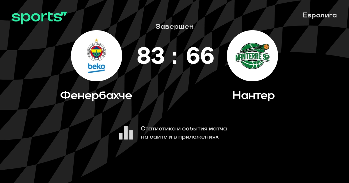 В прошедшем матче в рамках турнира Евролига (Группа A) состоялась встреча команд Фенербахче - Нантер в городе Стамбул (Турция) на стадионе Улкер Спортс Арена (вместимость - 13000)