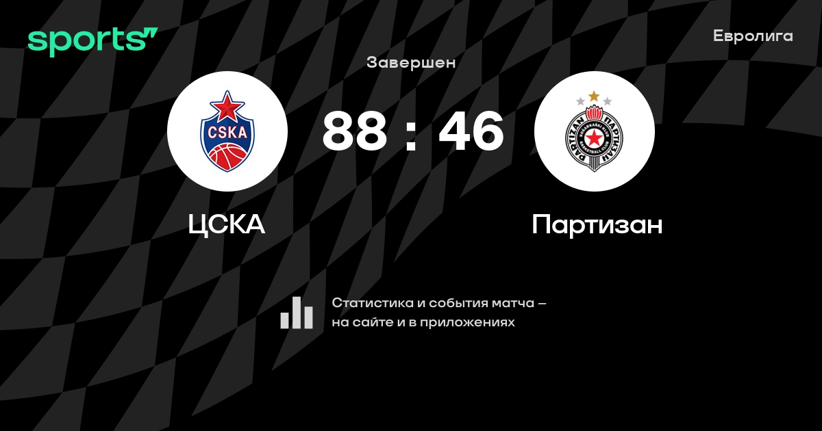 В прошедшем матче в рамках турнира Евролига (Группа A) состоялась встреча команд ЦСКА - Партизан в городе Москва (Россия) на стадионе УСК ЦСКА им. А.Я. Гомельского (вместимость - 4500)