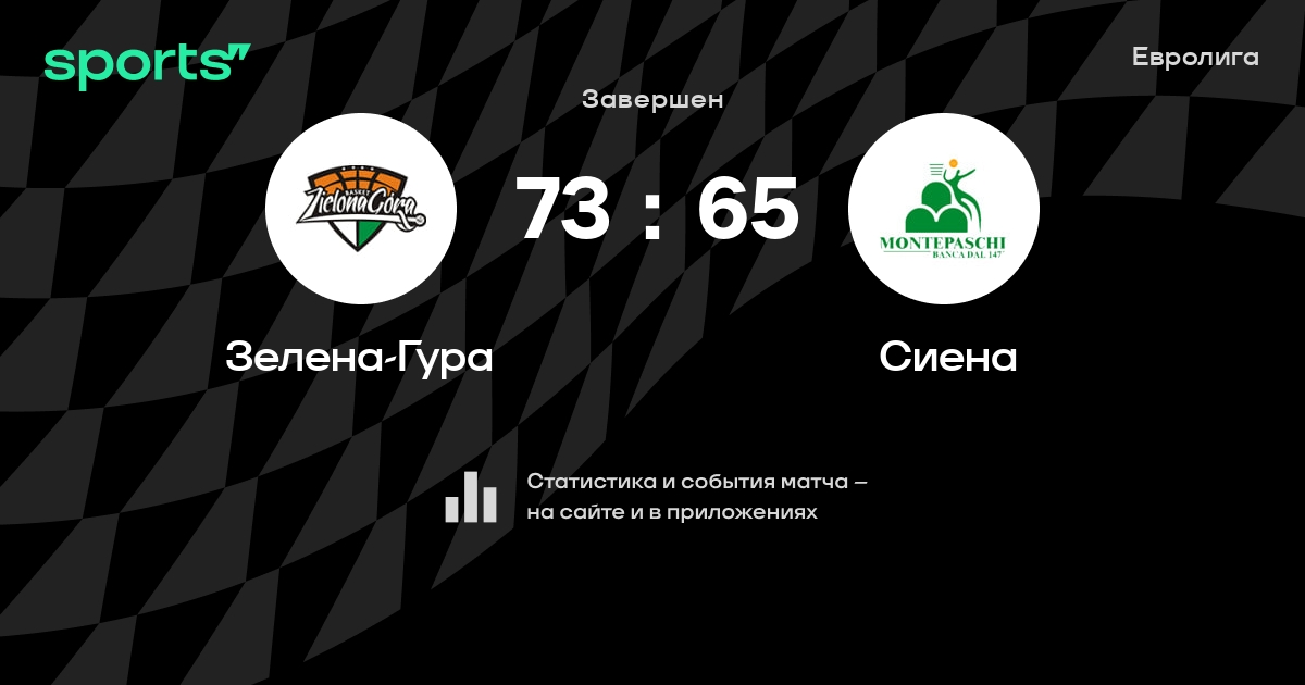 В прошедшем матче в рамках турнира Евролига (Группа C) состоялась встреча команд Зелена-Гура - Сиена в городе Зелена-Гура (Польша) на стадионе Рекреационно-спортивный центр (вместимость - 6080)