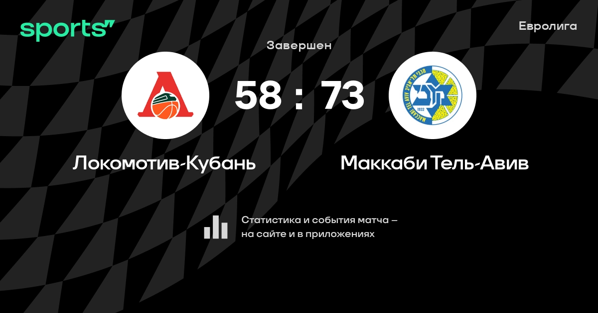 В прошедшем матче в рамках турнира Евролига (Группа D) состоялась встреча команд Локомотив-Кубань - Маккаби Тель-Авив в городе Краснодар (Россия) на стадионе Баскет-холл (вместимость - 7000)