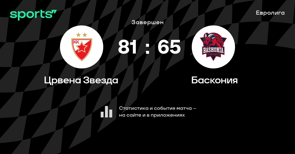 В прошедшем матче в рамках турнира Евролига (Группа D) состоялась встреча команд Црвена Звезда - Баскония в городе Белград (Сербия) на стадионе Белград Арена (вместимость - 22386)