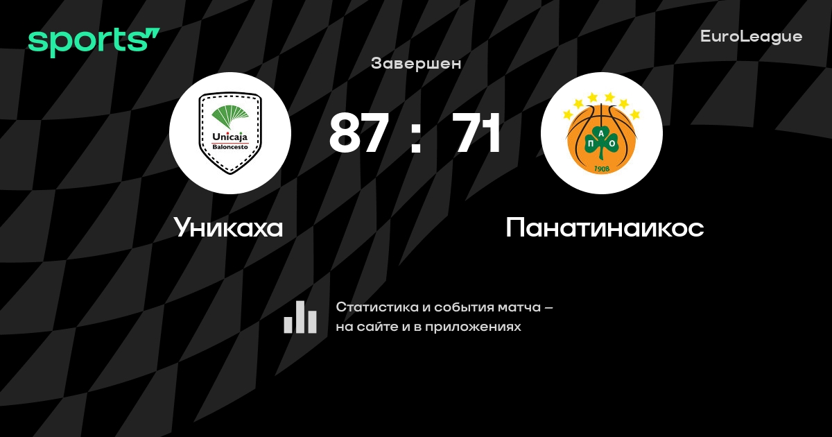 В прошедшем матче в рамках турнира EuroLeague (Топ-16. Группа E) состоялась встреча команд Уникаха - Панатинаикос в городе Малага (Испания) на стадионе Паласио де Депортес де Малага (вместимость - 10500)