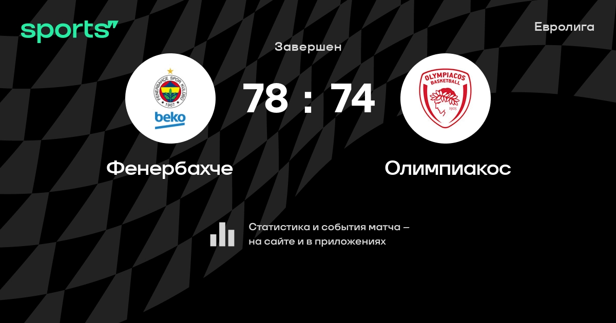 В прошедшем матче в рамках турнира Евролига (Топ-16. Группа E) состоялась встреча команд Фенербахче - Олимпиакос в городе Стамбул (Турция) на стадионе Улкер Спортс Арена (вместимость - 13000)