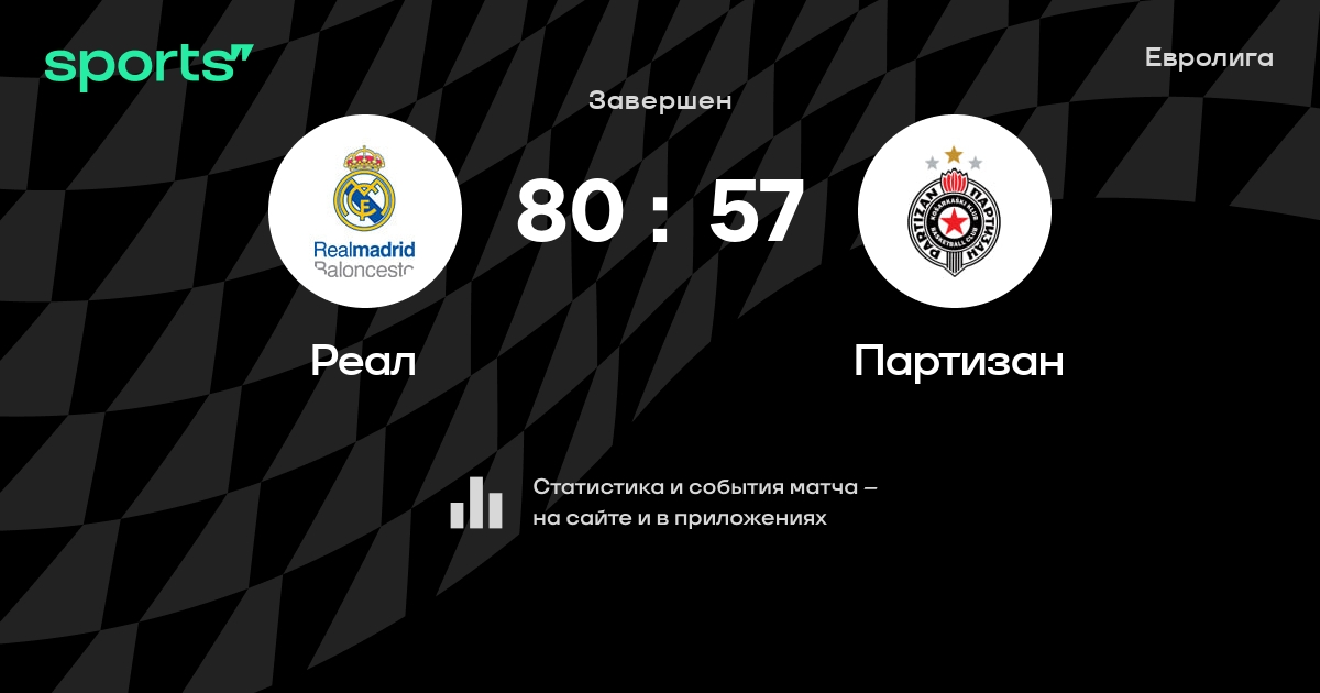 В прошедшем матче в рамках турнира Евролига (Топ-16. Группа F) состоялась встреча команд Реал - Партизан в городе Мадрид (Испания) на стадионе Мовистар Арена (вместимость - 15000)