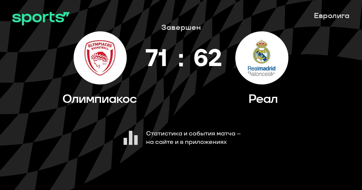 В прошедшем матче в рамках турнира Евролига (Четвертьфинал) состоялась встреча команд Олимпиакос - Реал в городе Пирей (Греция) на стадионе Арена Мира и Дружбы (вместимость - 12171)