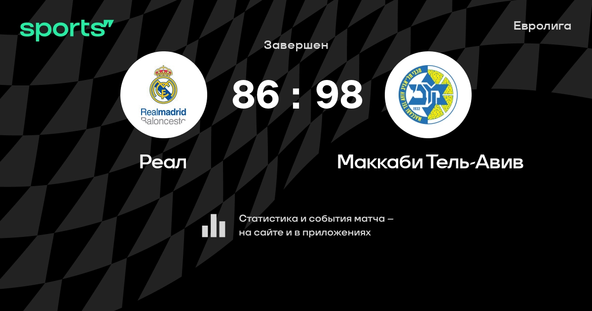 В прошедшем матче в рамках турнира Евролига (Финал) состоялась встреча команд Реал - Маккаби Тель-Авив в городе Ассаго (Италия) на стадионе Униполь Форум (вместимость - 11200)