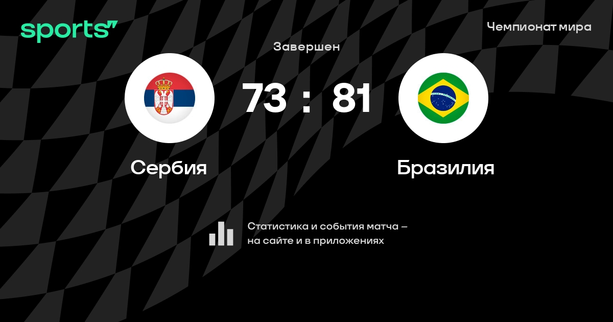 В прошедшем матче в рамках турнира Чемпионат мира (Группа А) состоялась встреча команд Сербия - Бразилия в городе Гранада (Испания) на стадионе Паласио Мунисипаль де Депортес (вместимость - 7358)