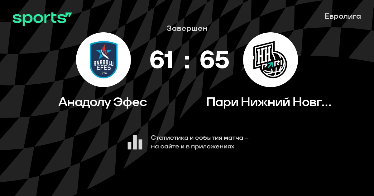 В прошедшем матче в рамках турнира Евролига (Группа A) состоялась встреча команд Анадолу Эфес - Пари Нижний Новгород в городе Стамбул (Турция) на стадионе Абди Ипекчи Арена (вместимость - 12500)