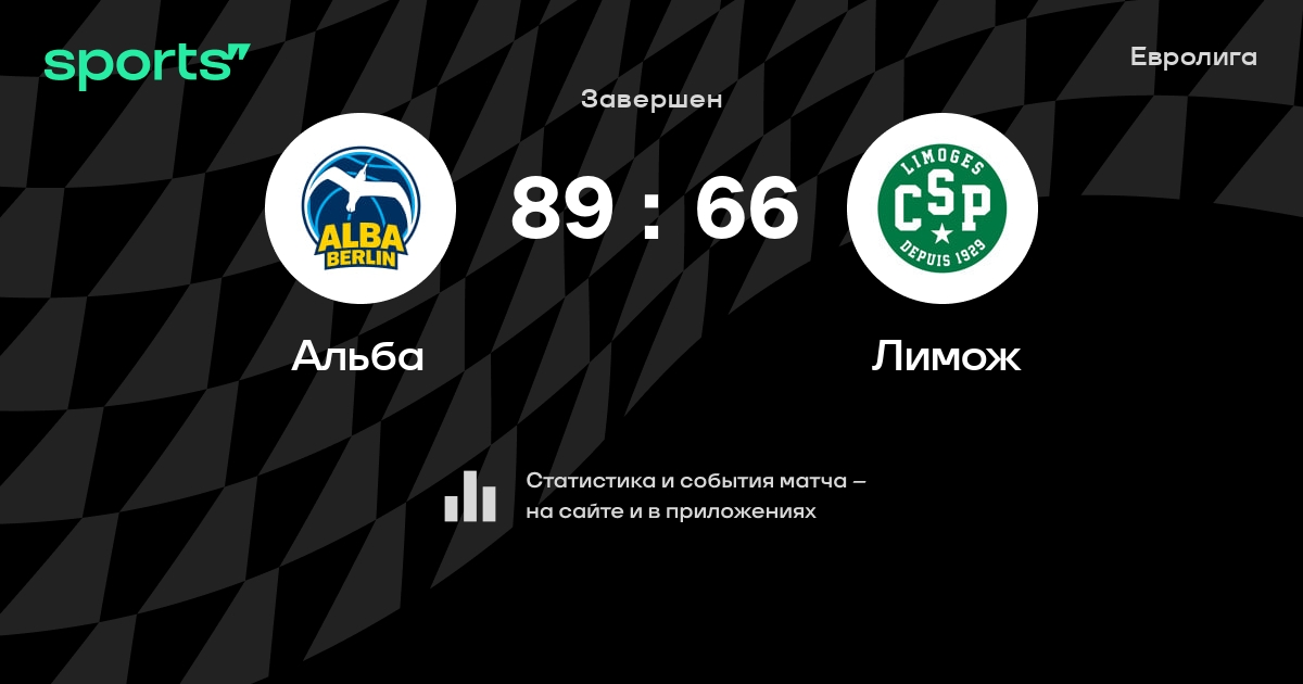 В прошедшем матче в рамках турнира Евролига (Группа B) состоялась встреча команд Альба - Лимож в городе Берлин (Германия) на стадионе Убер Арена (вместимость - 16000)