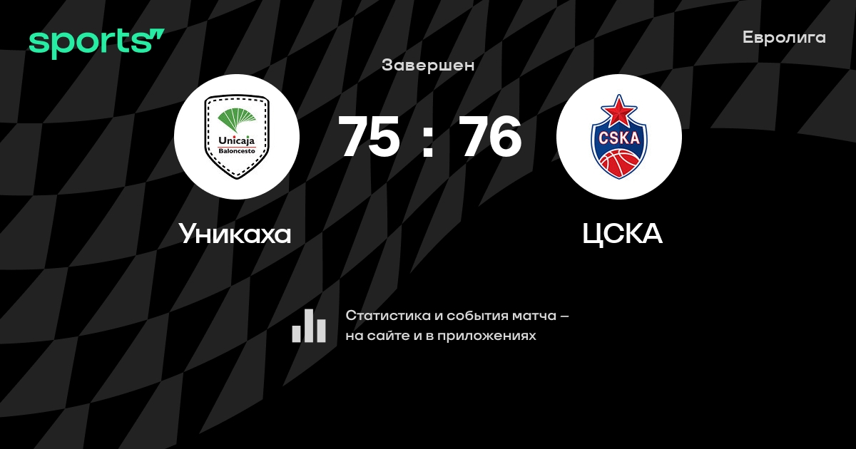 В прошедшем матче в рамках турнира Евролига (Группа B) состоялась встреча команд Уникаха - ЦСКА в городе Малага (Испания) на стадионе Паласио де Депортес де Малага (вместимость - 10500)
