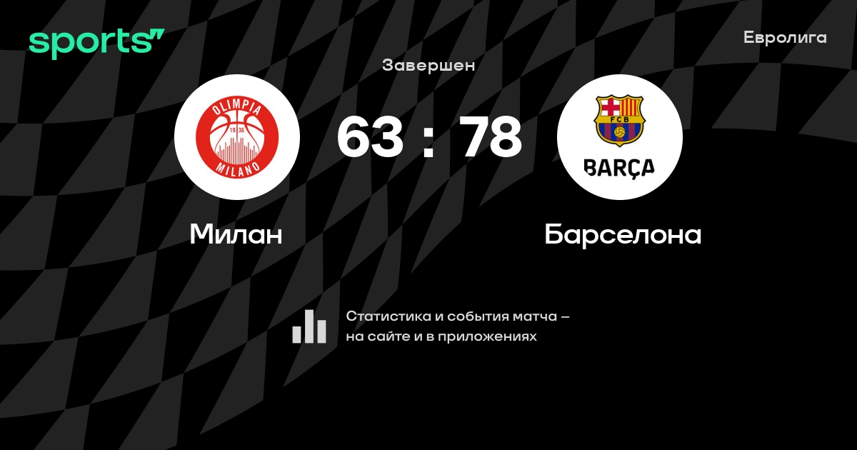 В прошедшем матче в рамках турнира Евролига (Группа C) состоялась встреча команд Милан - Барселона в городе Ассаго (Италия) на стадионе Униполь Форум (вместимость - 11200)