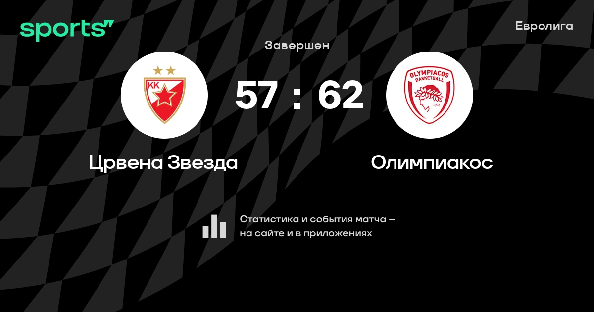 В прошедшем матче в рамках турнира Евролига (Группа D) состоялась встреча команд Црвена Звезда - Олимпиакос в городе Белград (Сербия) на стадионе Белград Арена (вместимость - 22386)