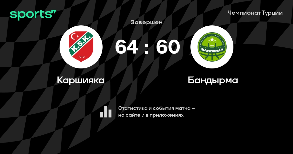 В прошедшем матче в рамках турнира Чемпионат Турции состоялась встреча команд Каршияка - Бандырма в городе Измир (Турция) на стадионе Каршияка Арена (вместимость - 6500)