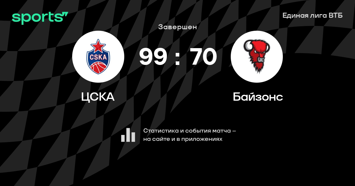В прошедшем матче в рамках турнира Единая лига ВТБ состоялась встреча команд ЦСКА - Байзонс в городе Москва (Россия) на стадионе УСК ЦСКА им. А.Я. Гомельского (вместимость - 4500)