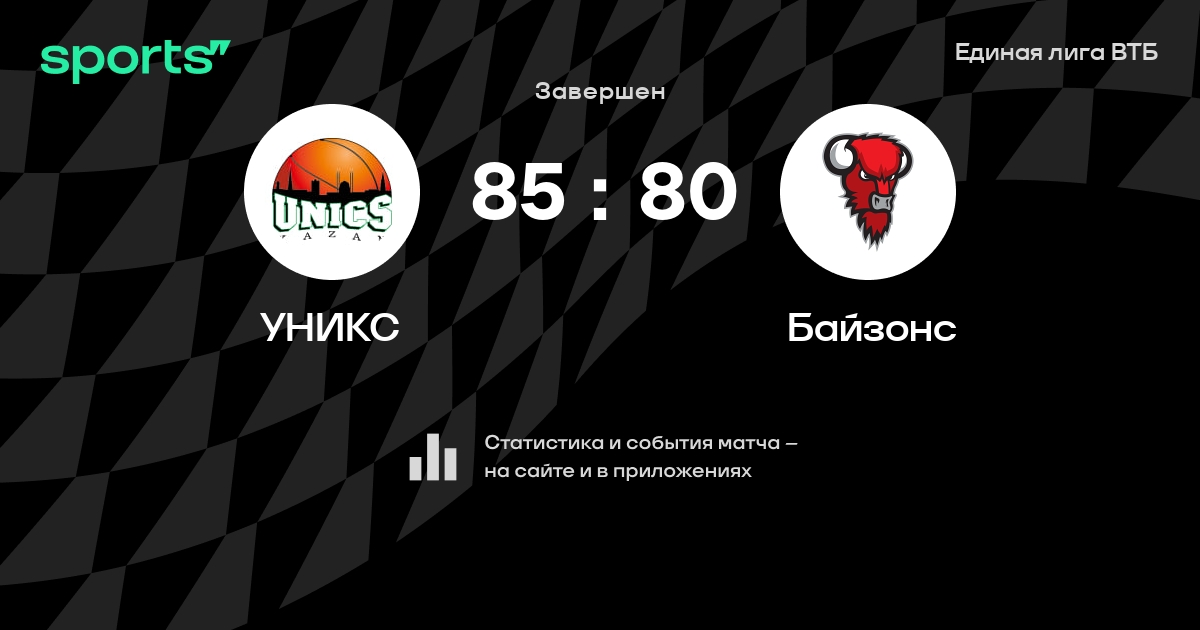 В прошедшем матче в рамках турнира Единая лига ВТБ состоялась встреча команд УНИКС - Байзонс в городе Казань (Россия) на стадионе Баскет-холл (вместимость - 7000)
