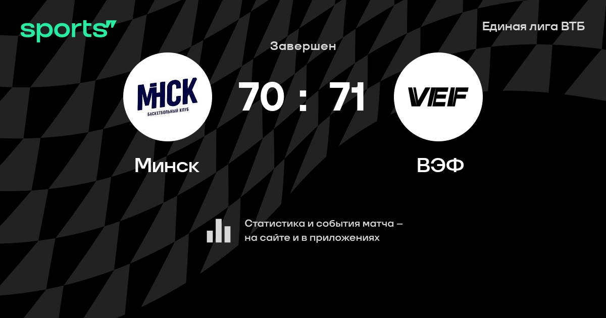 В прошедшем матче в рамках турнира Единая лига ВТБ состоялась встреча команд Минск - ВЭФ в городе Минск (Беларусь) на стадионе Минск-Арена (вместимость - 15086)