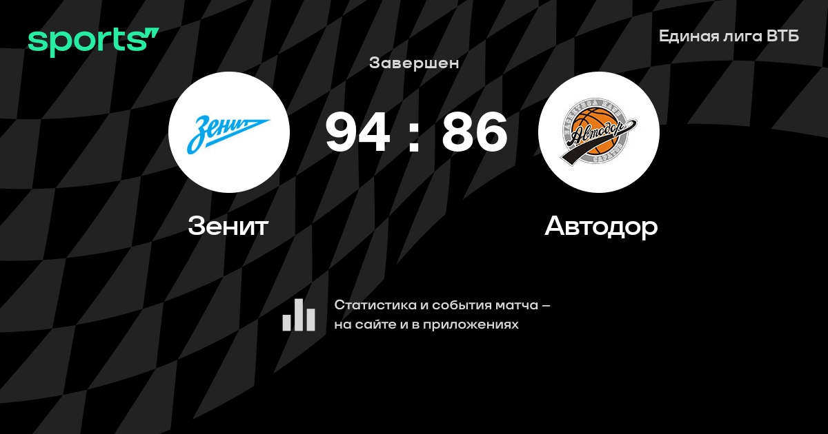 В прошедшем матче в рамках турнира Единая лига ВТБ состоялась встреча команд Зенит - Автодор в городе Санкт-Петербург (Россия) на стадионе КСК Арена (вместимость - 7120)