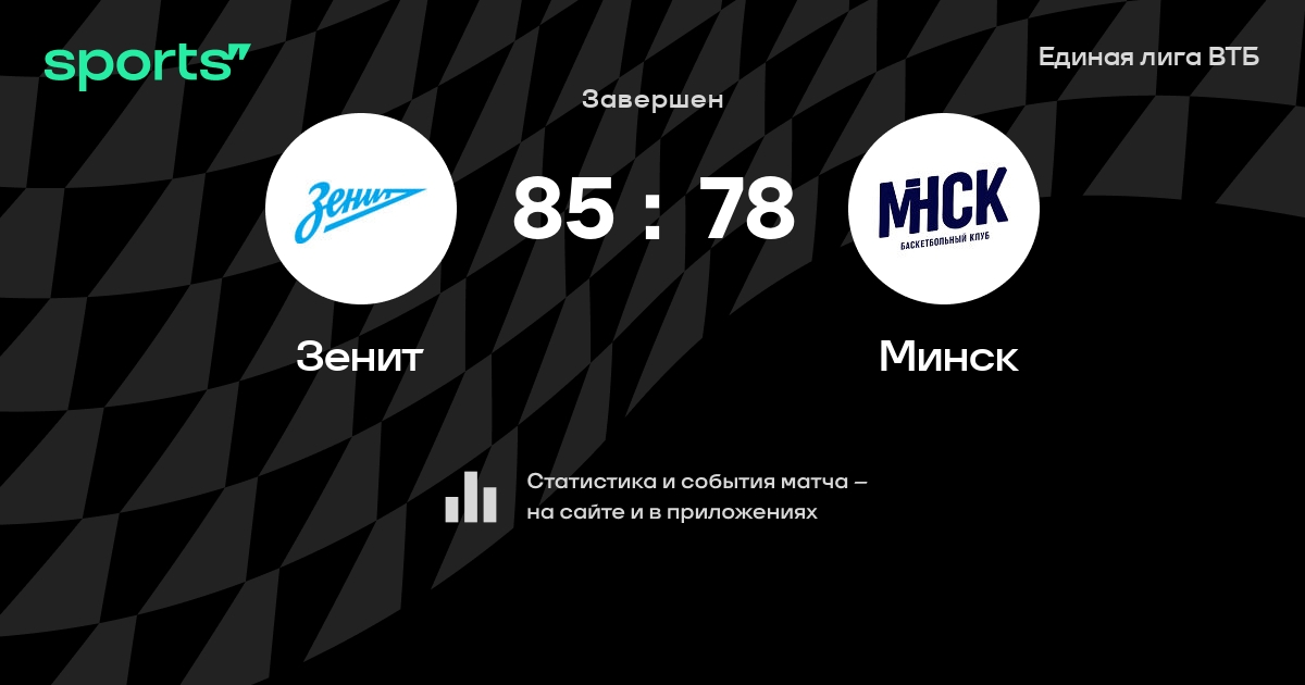 В прошедшем матче в рамках турнира Единая лига ВТБ состоялась встреча команд Зенит - Минск в городе Санкт-Петербург (Россия) на стадионе КСК Арена (вместимость - 7120)