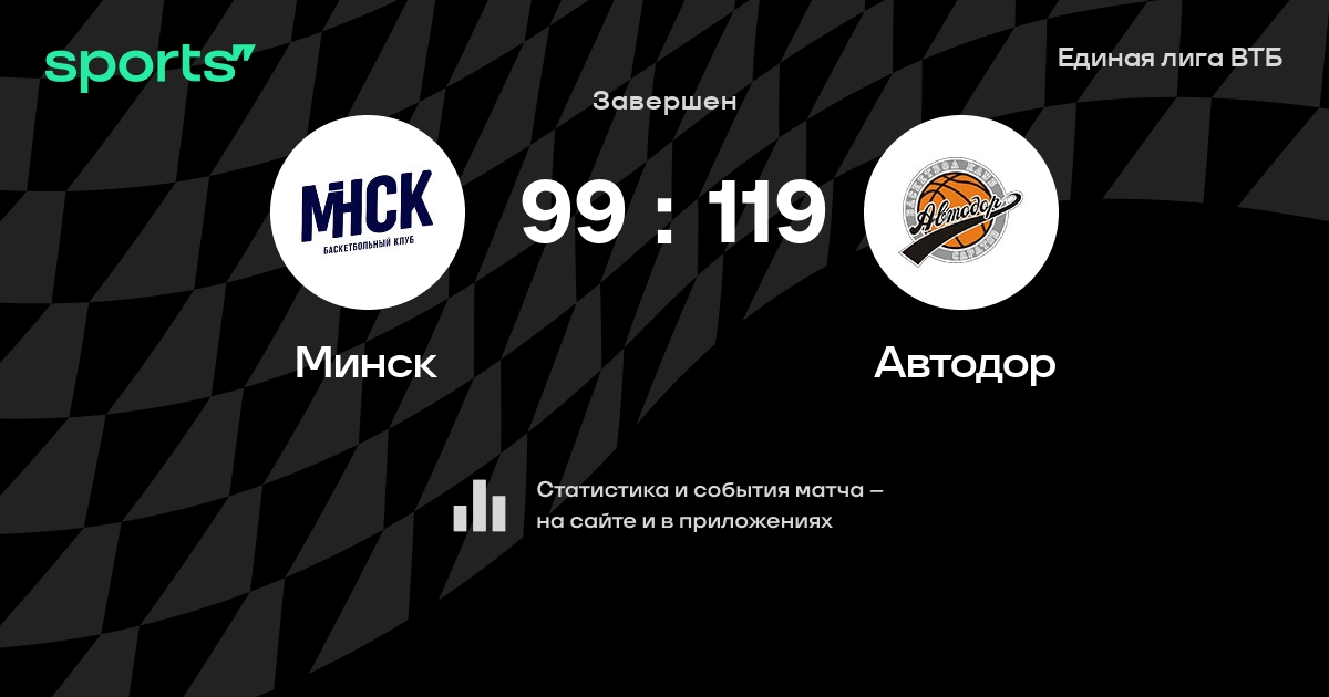 В прошедшем матче в рамках турнира Единая лига ВТБ состоялась встреча команд Минск - Автодор в городе Минск (Беларусь) на стадионе Минск-Арена (вместимость - 15086)