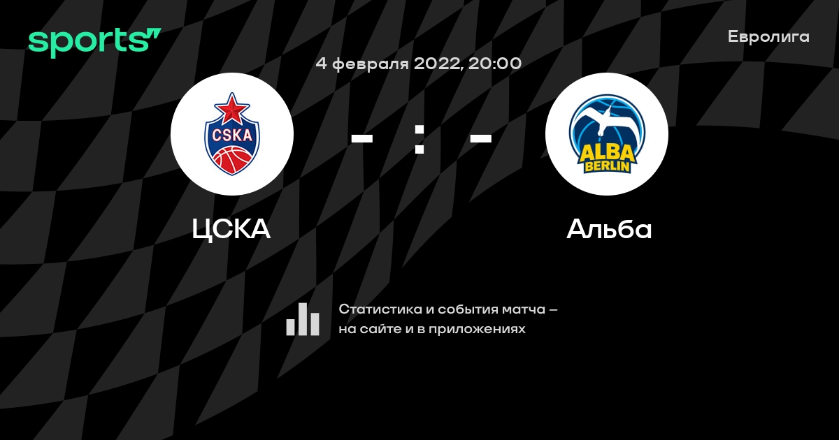 В предстоящем матче в рамках турнира Евролига пройдет встреча команд ЦСКА - Альба в городе Москва (Россия) на стадионе Мегаспорт (вместимость - 13126).