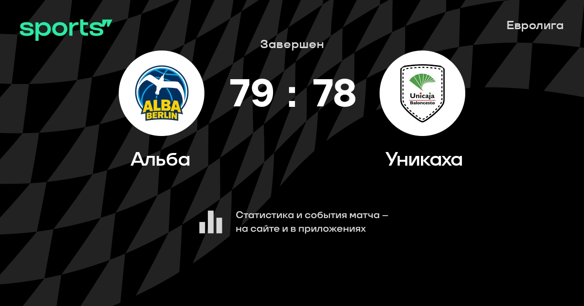 В прошедшем матче в рамках турнира Евролига (Группа B) состоялась встреча команд Альба - Уникаха в городе Берлин (Германия) на стадионе Убер Арена (вместимость - 16000)