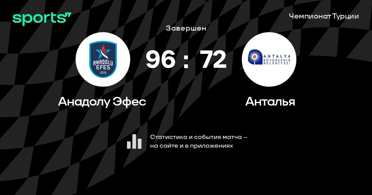 В прошедшем матче в рамках турнира Чемпионат Турции состоялась встреча команд Анадолу Эфес - Анталья в городе Istanbul на стадионе Dar???afaka Ayhan ?ahenk S.S.