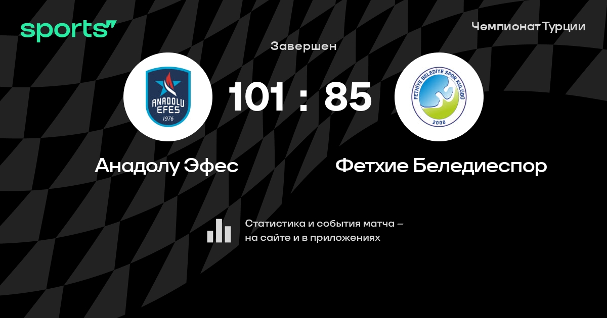 В прошедшем матче в рамках турнира Чемпионат Турции состоялась встреча команд Анадолу Эфес - Фетхие Беледиеспор в городе Стамбул (Турция) на стадионе Синан Эрдем Доум (вместимость - 16000)