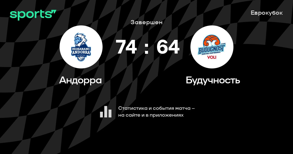 В прошедшем матче в рамках турнира Еврокубок (1/8 финала) состоялась встреча команд Андорра - Будучность в городе Андорра-ла-Велья (Андорра) на стадионе Полиэспортиу де Андорра (вместимость - 5000)
