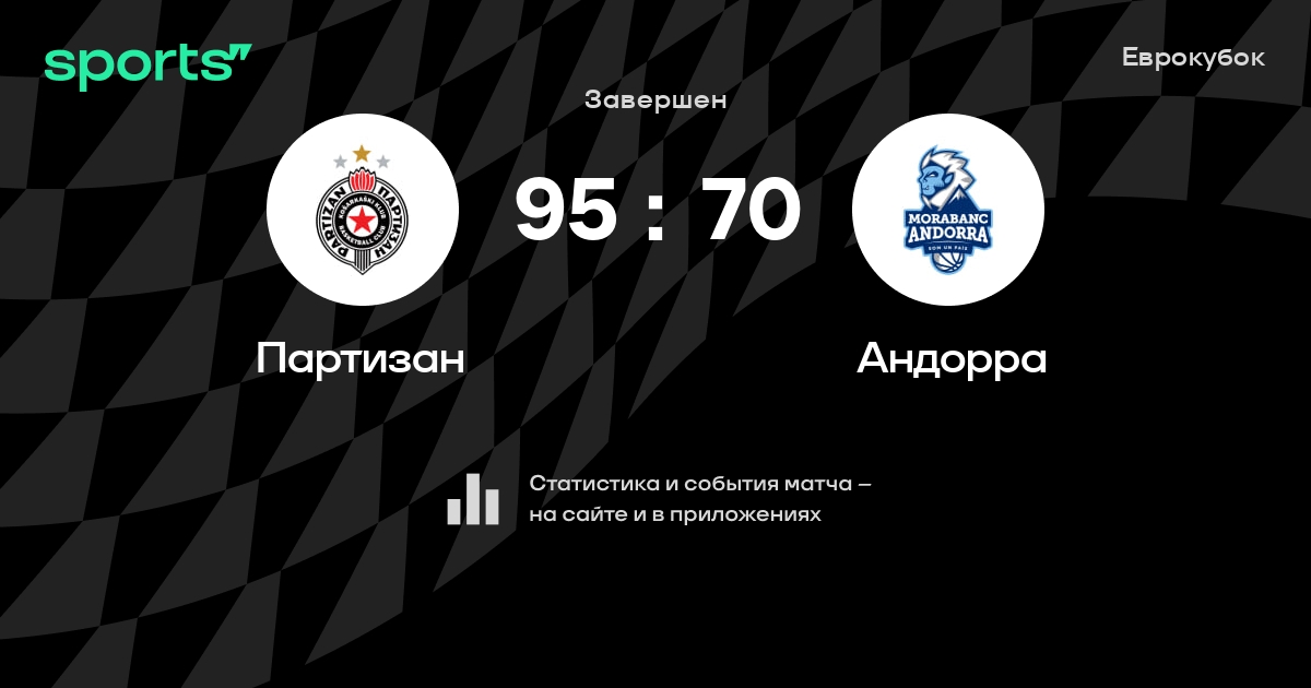 В прошедшем матче в рамках турнира Еврокубок состоялась встреча команд Партизан - Андорра в городе Белград (Сербия) на стадионе Александар Николич Холл (вместимость - 7000)