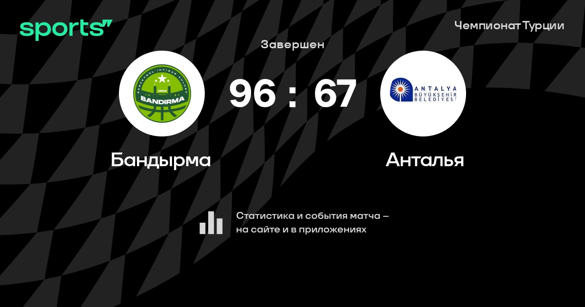В прошедшем матче в рамках турнира Чемпионат Турции состоялась встреча команд Бандырма - Анталья в городе Balikesir на стадионе Kara Ali Acar Spor Salonu