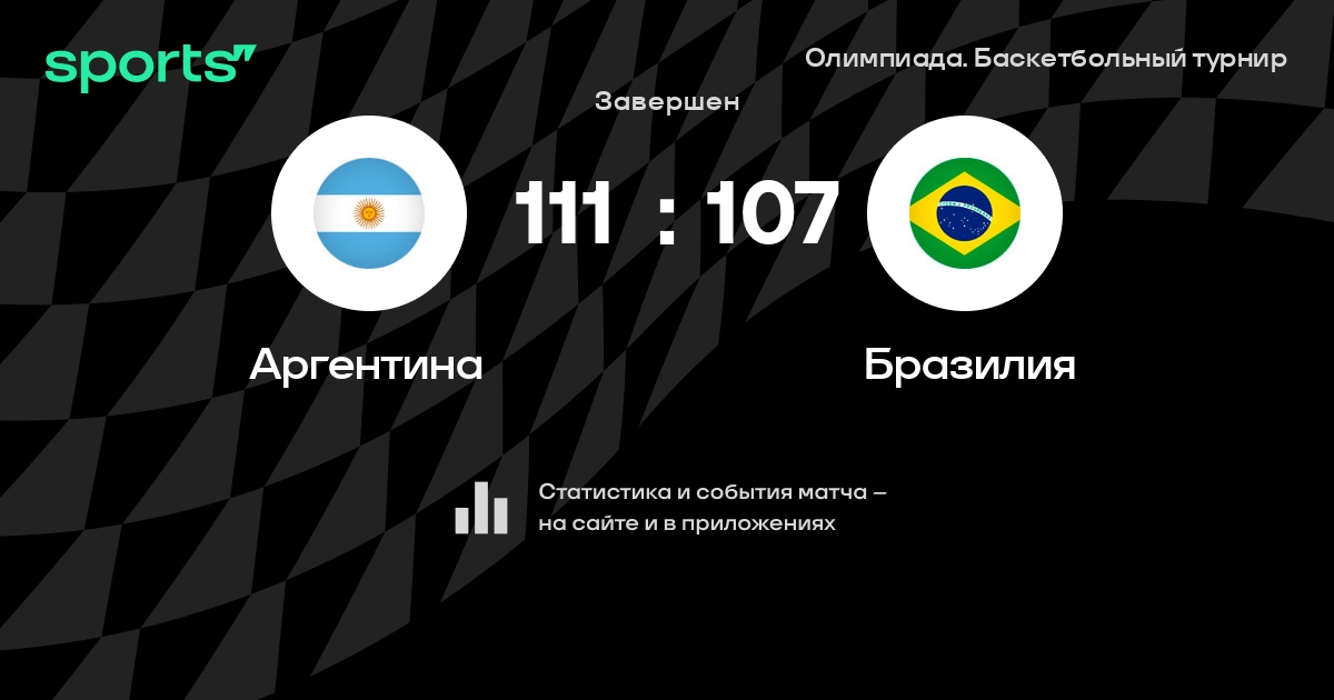 В прошедшем матче в рамках турнира Олимпиада. Баскетбольный турнир состоялась встреча команд Аргентина - Бразилия в городе Rio de Janeiro на стадионе Carioca Arena 1