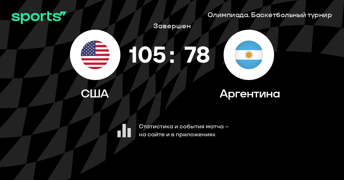 В прошедшем матче в рамках турнира Олимпиада. Баскетбольный турнир состоялась встреча команд США - Аргентина в городе Rio de Janeiro на стадионе Carioca Arena 1