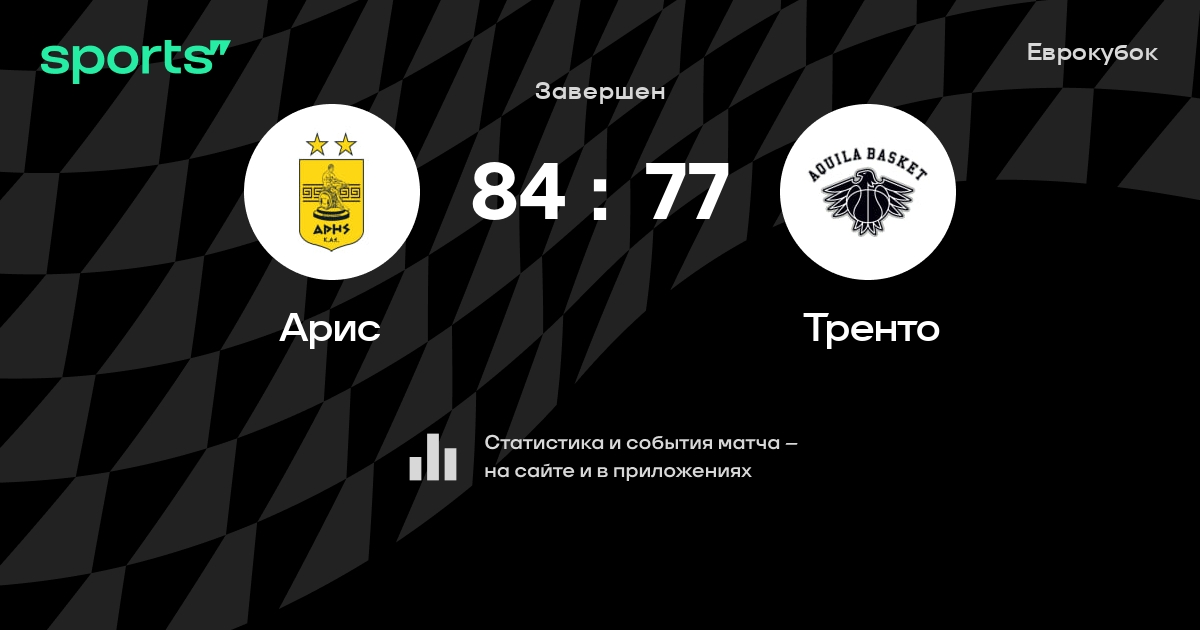 В прошедшем матче в рамках турнира Еврокубок состоялась встреча команд Арис - Тренто в городе на стадионе Sala Alexandreio Melathron Nikos Galis