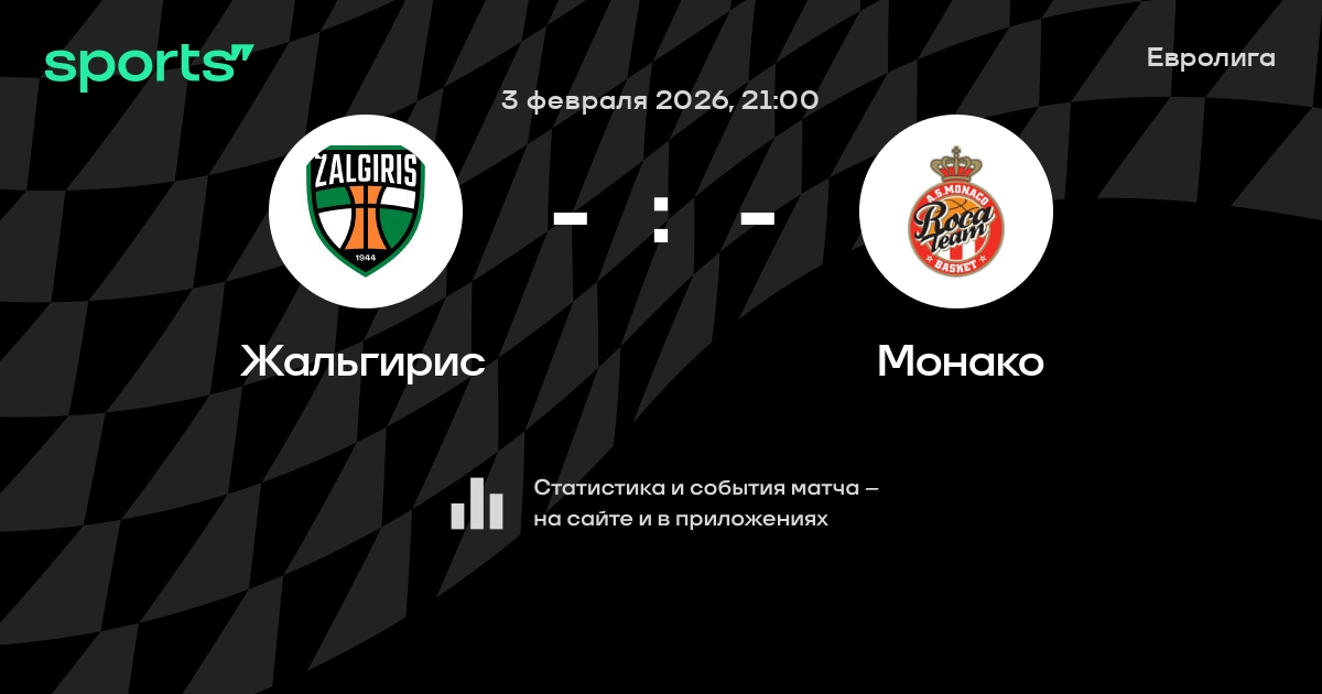 В предстоящем матче в рамках турнира Евролига пройдет встреча команд Жальгирис - Монако в городе Каунас (Литва) на стадионе Жальгирис Арена.