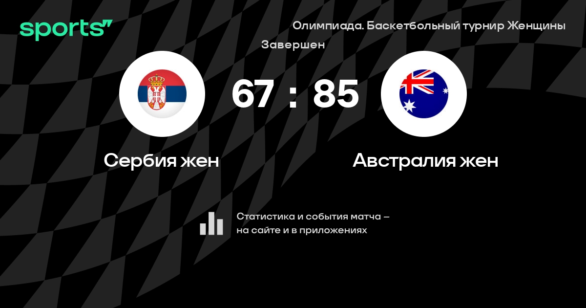 В прошедшем матче в рамках турнира Олимпиада. Баскетбольный турнир Женщины (Четвертьфинал) состоялась встреча команд Сербия жен - Австралия жен в городе Париж (Франция) на стадионе Аккор Арена (вместимость - 15609)