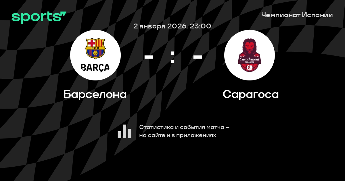 В предстоящем матче в рамках турнира Чемпионат Испании пройдет встреча команд Барселона - Сарагоса .