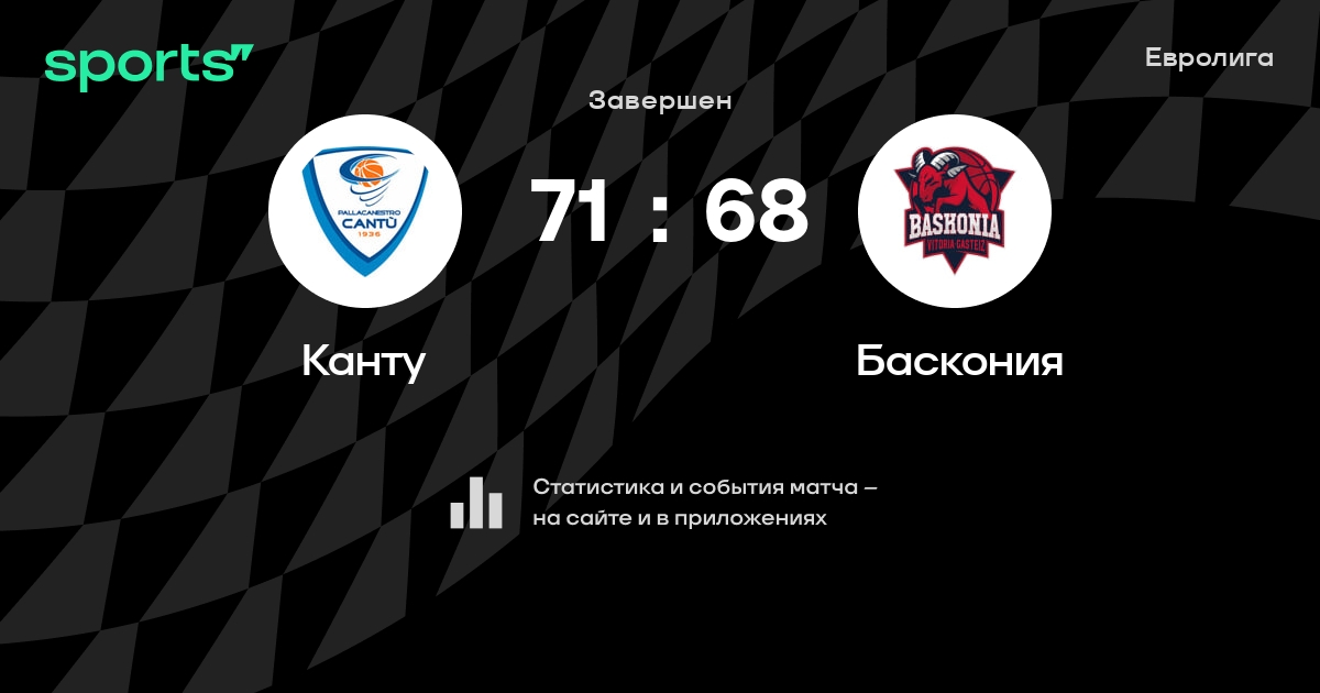 В прошедшем матче в рамках турнира Евролига (Группа A) состоялась встреча команд Канту - Баскония в городе Cucciago на стадионе NGC Arena
