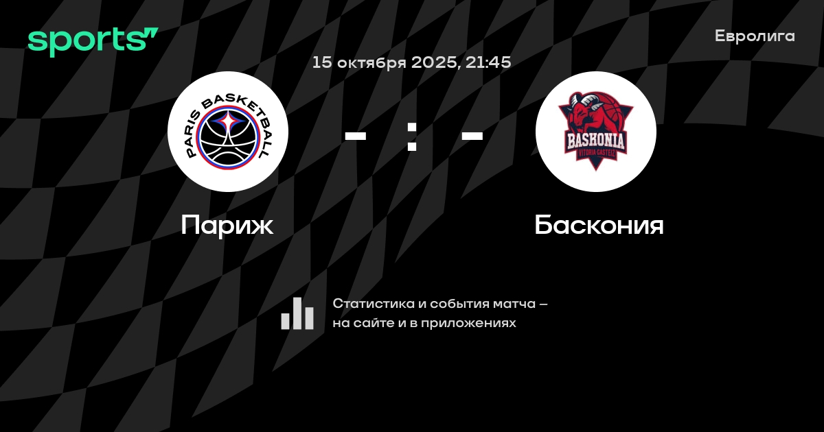 В предстоящем матче в рамках турнира Евролига пройдет встреча команд Париж - Баскония в городе Париж (Франция) на стадионе Адидас Арена (вместимость - 8000).