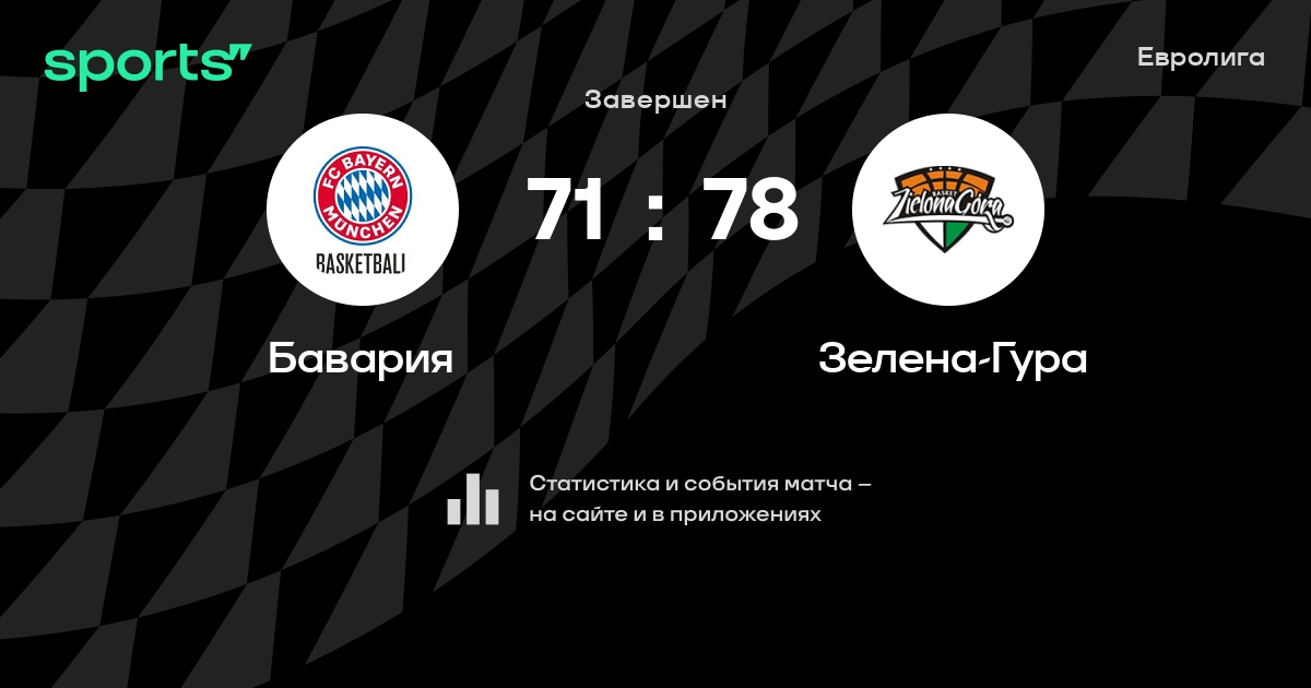 В прошедшем матче в рамках турнира Евролига (Группа C) состоялась встреча команд Бавария - Зелена-Гура в городе Мюнхен (Германия) на стадионе BMW Парк (вместимость - 6700)