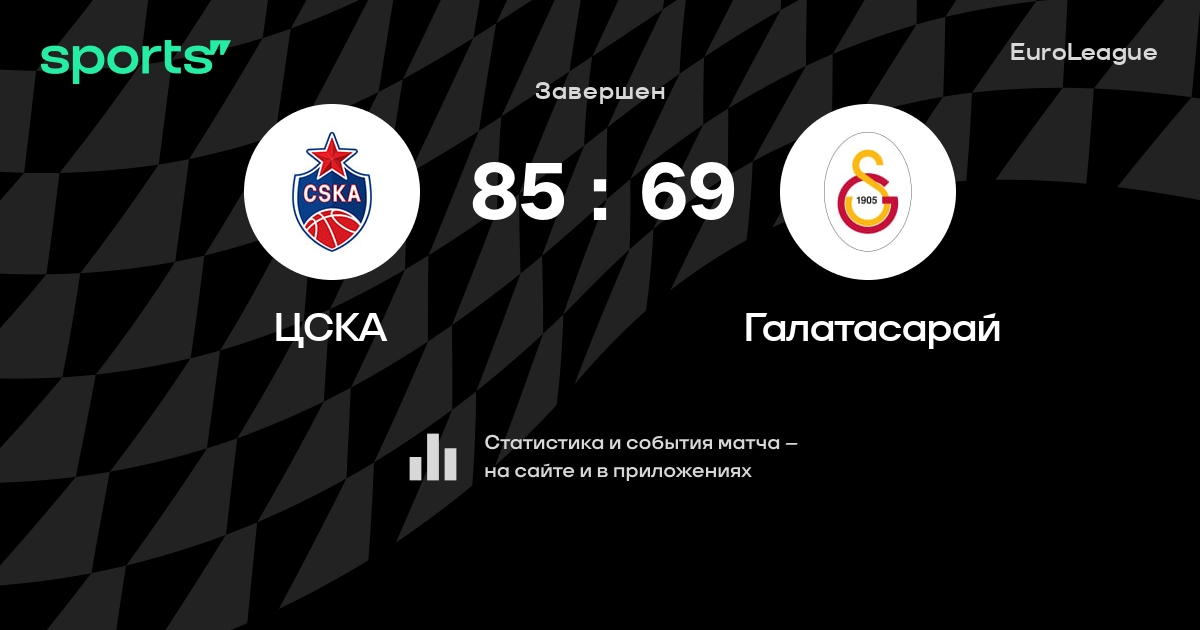 В прошедшем матче в рамках турнира EuroLeague состоялась встреча команд ЦСКА - Галатасарай в городе Москва (Россия) на стадионе Мегаспорт (вместимость - 13126)