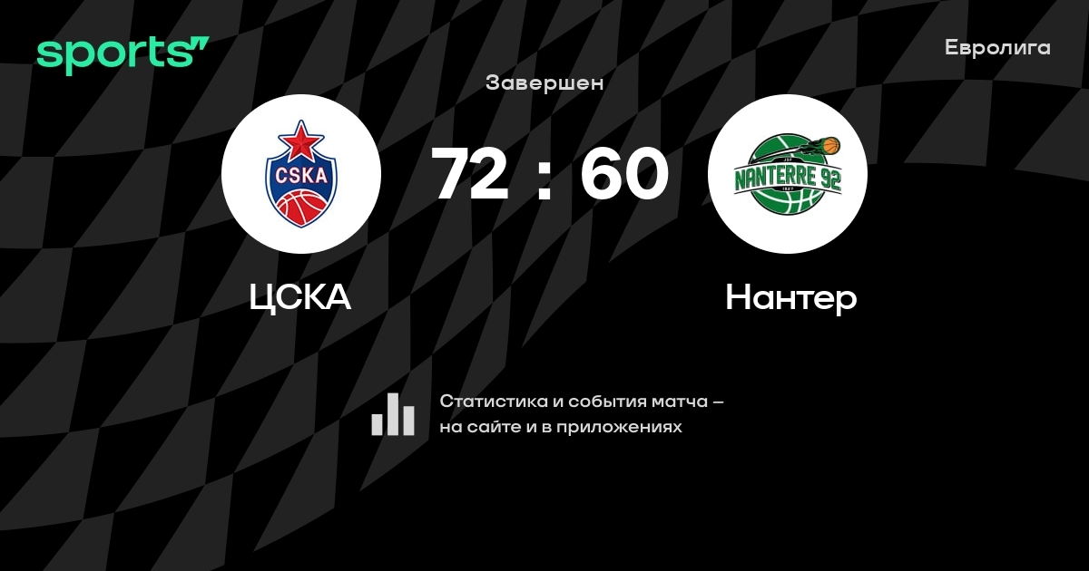 В прошедшем матче в рамках турнира Евролига (Группа A) состоялась встреча команд ЦСКА - Нантер в городе Москва (Россия) на стадионе УСК ЦСКА им. А.Я. Гомельского (вместимость - 4500)