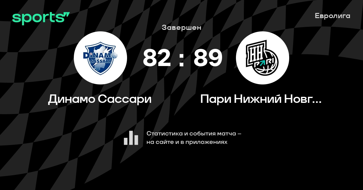 В прошедшем матче в рамках турнира Евролига (Группа A) состоялась встреча команд Динамо Сассари - Пари Нижний Новгород в городе Сассари (Италия) на стадионе Паласпорт Роберта Серрадиминьи (вместимость - 5000)