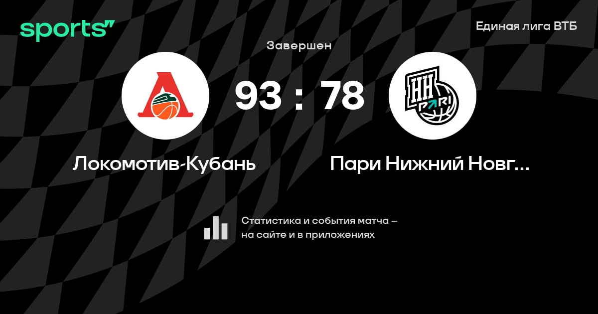 В прошедшем матче в рамках турнира Единая лига ВТБ состоялась встреча команд Локомотив-Кубань - Пари Нижний Новгород в городе Краснодар (Россия) на стадионе Баскет-холл (вместимость - 7000)