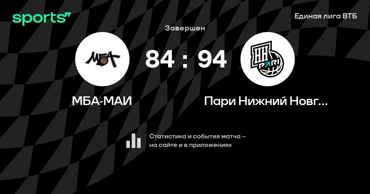 Как прошел матч, смотрите в текстовой трансляции МБА-МАИ - Пари Нижний Новгород на Sports.ru