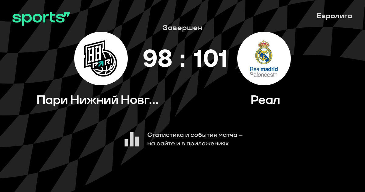 В прошедшем матче в рамках турнира Евролига (Группа A) состоялась встреча команд Пари Нижний Новгород - Реал в городе Нижний Новгород (Россия) на стадионе КРК Нагорный (вместимость - 5600)