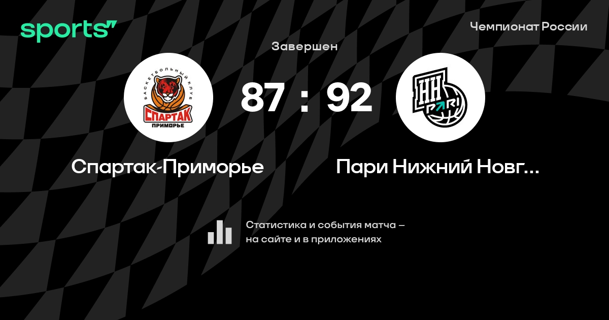 В прошедшем матче в рамках турнира Чемпионат России состоялась встреча команд Спартак-Приморье - Пари Нижний Новгород
