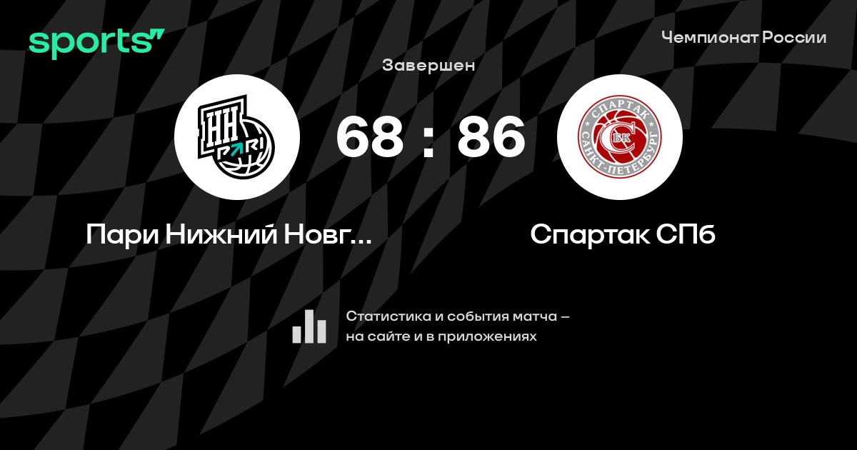 В прошедшем матче в рамках турнира Чемпионат России состоялась встреча команд Пари Нижний Новгород - Спартак СПб