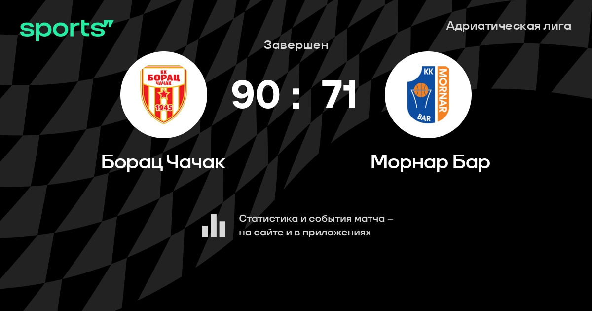 В прошедшем матче в рамках турнира Адриатическая лига состоялась встреча команд Борац Чачак - Морнар Бар в городе на стадионе Hala Borac